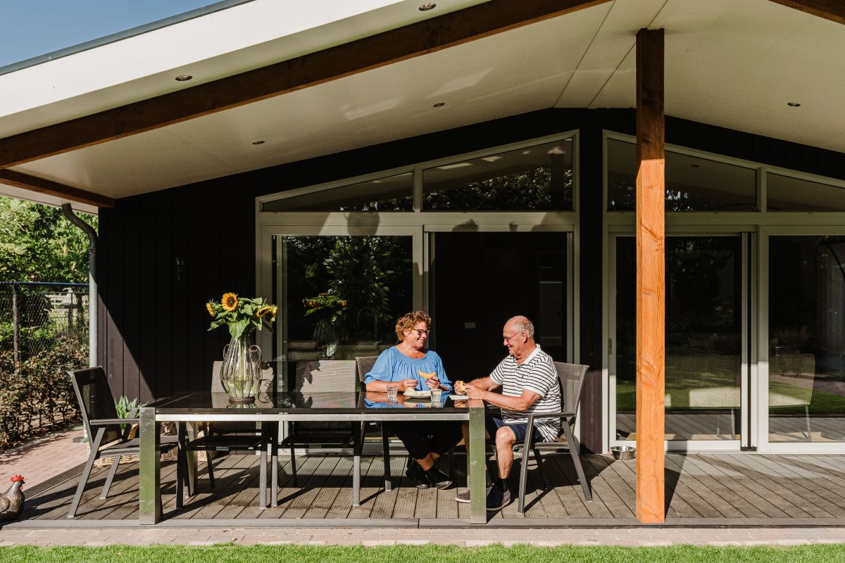 Het is heerlijk landelijk wonen in deze mantelzorgwoning met veranda, Hier wordt maximaal genoten van het mooie uitzicht.